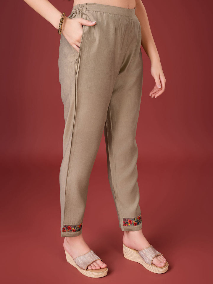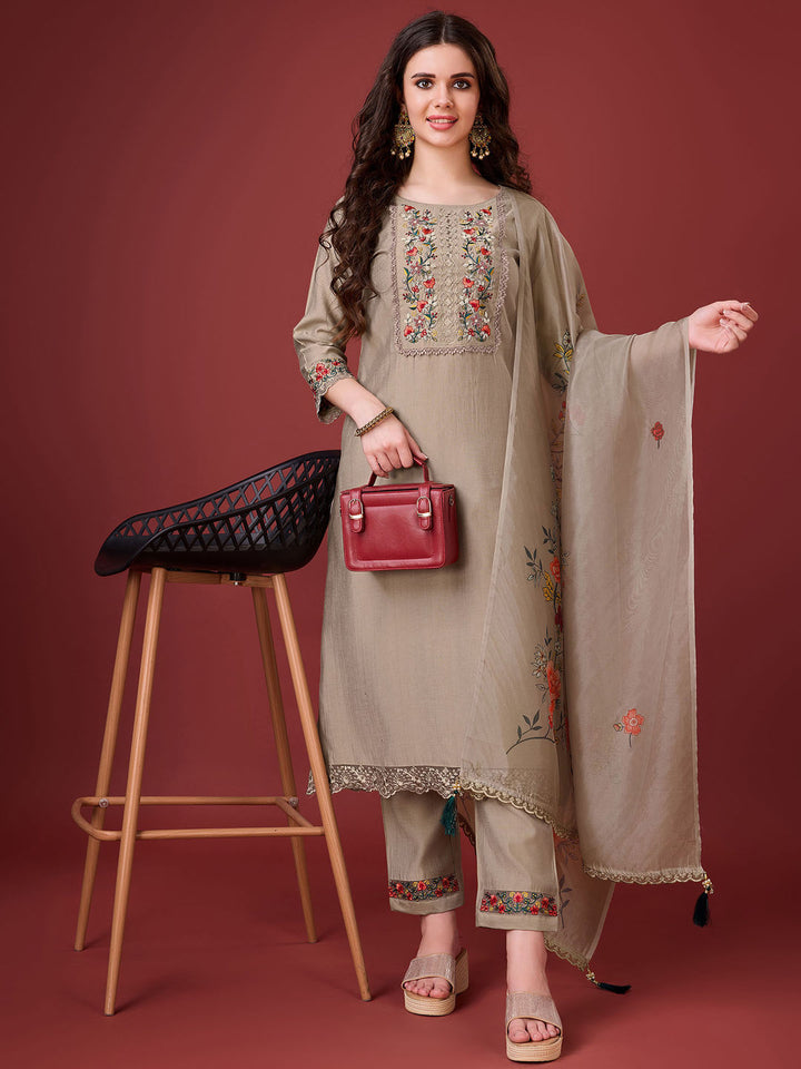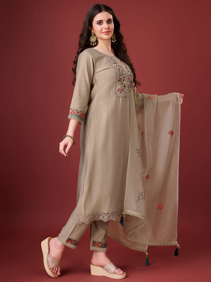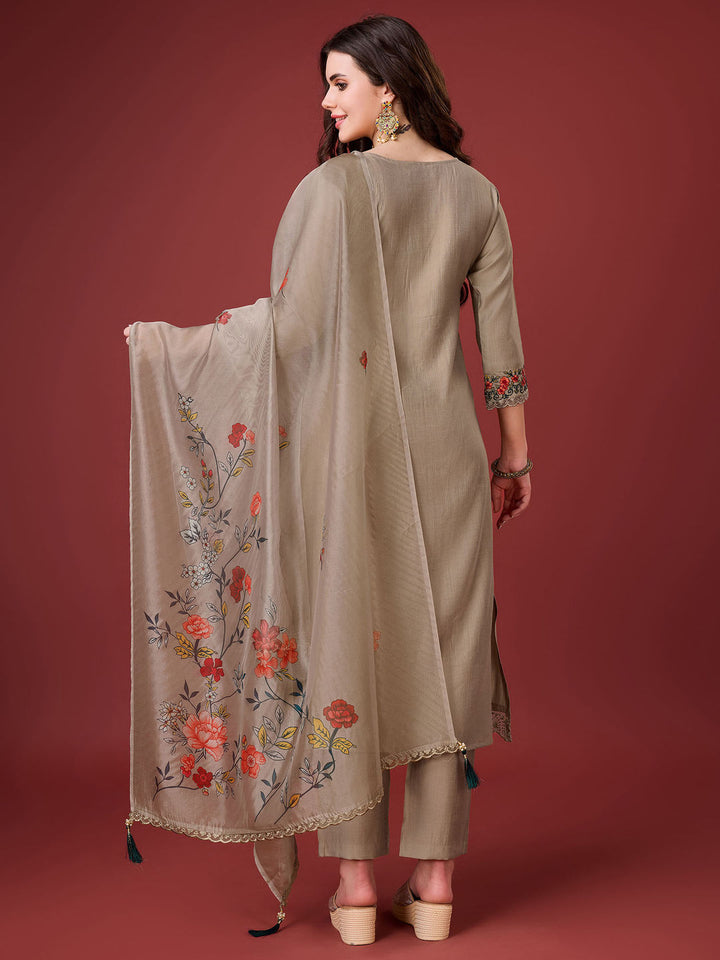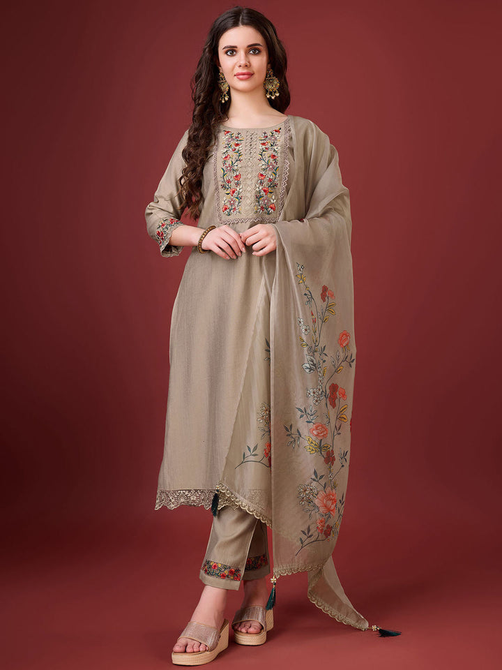 Bronze Viscose Silk Embroidered Kurta with Pant and Dupatta (Set of 3)