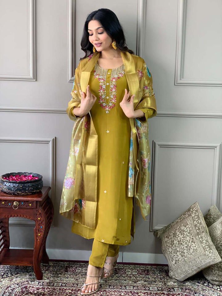 Elegant Heavy Embroidery Kurta with Pant and Dupatta (Set of 3)