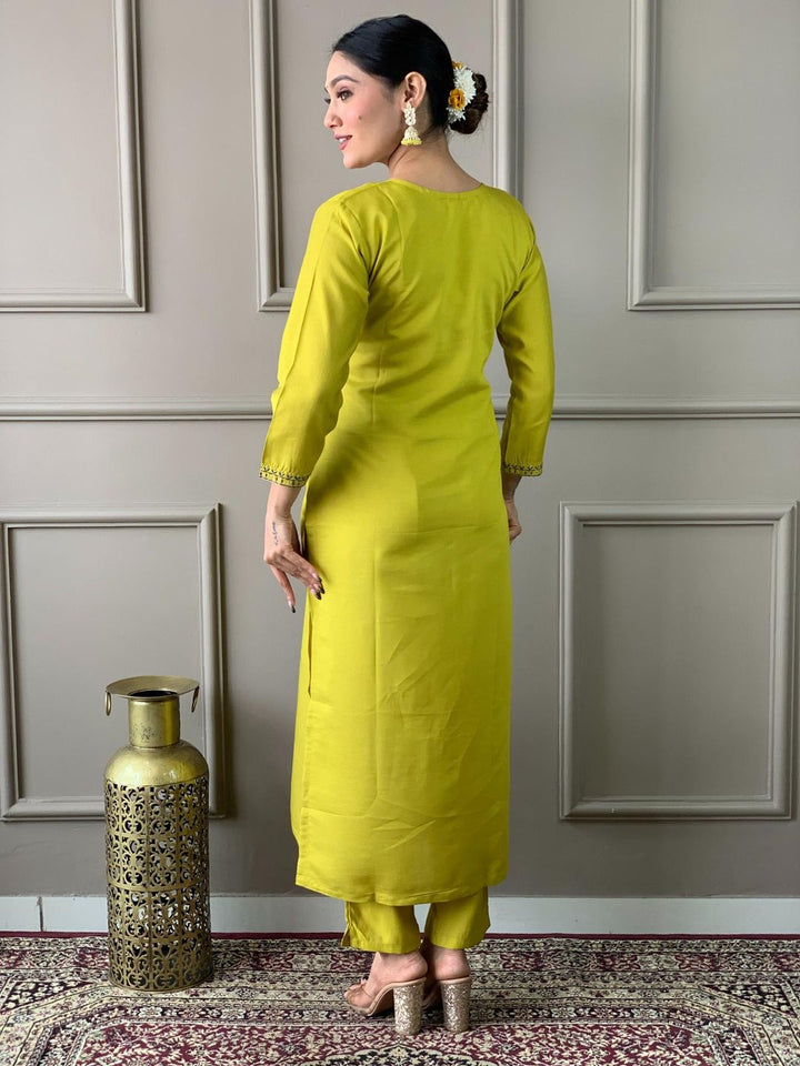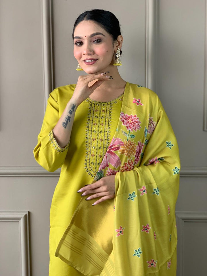 Green Traditional Embroidered Kurta with Pant and Dupatta (Set of 3)