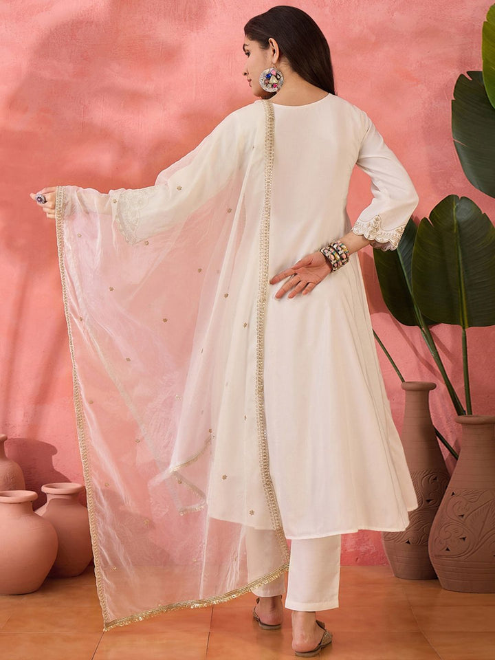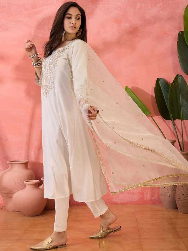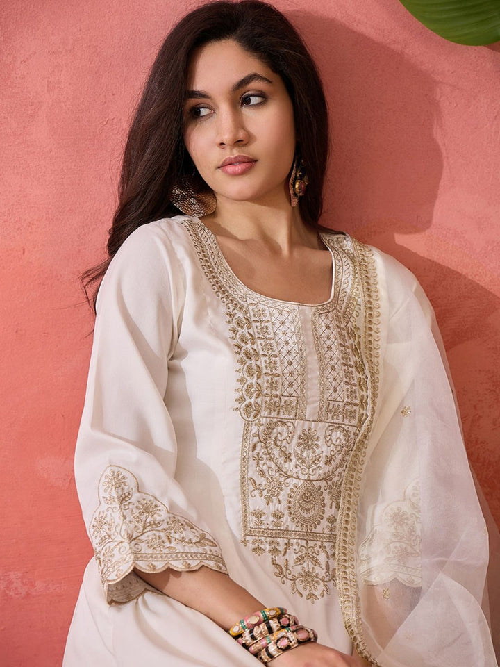 Off White Legend Zari Sequence Embroidered Kurta with Pant and Dupatta (Set of 3)