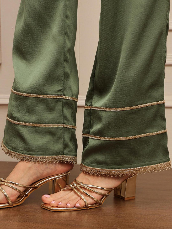 Olive Luxe Embroidered Kurta with Pant and Dupatta (Set of 3)