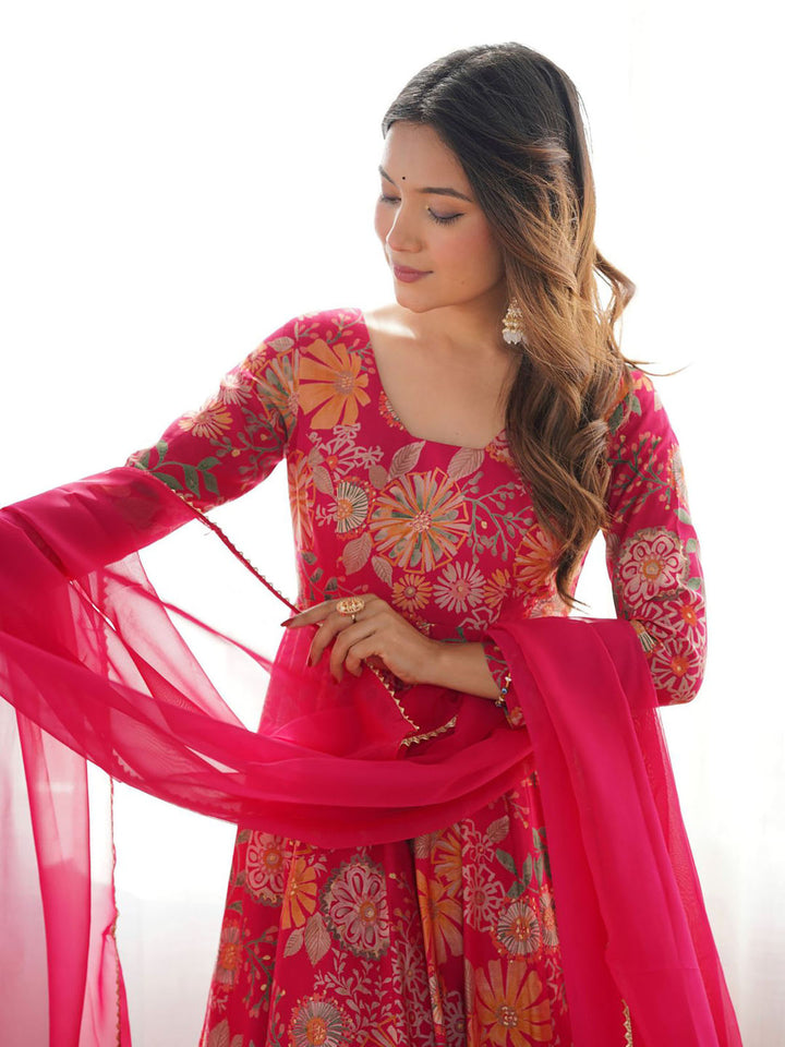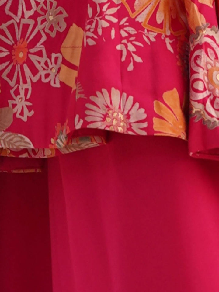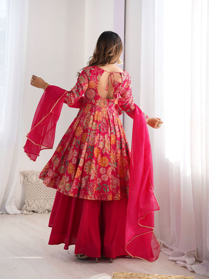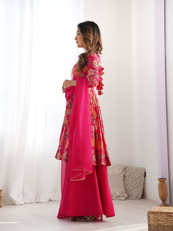 Pink Silk Blend Printed Semi-Stitched Kurta and Palazzo with Dupatta (Set of 3)