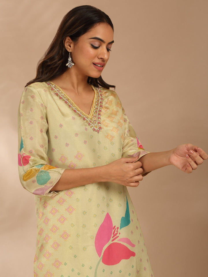 Pure Tissue Shimmer Printed & Embellished Pakistani Kurta Pant & Dupatta (Set of 3)