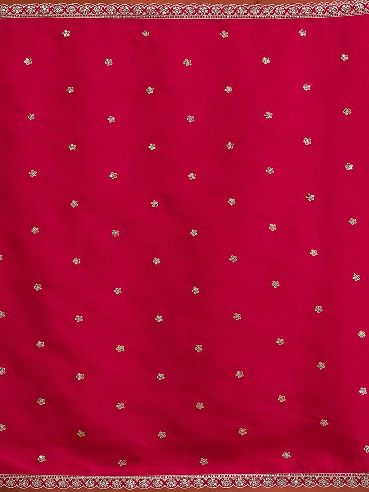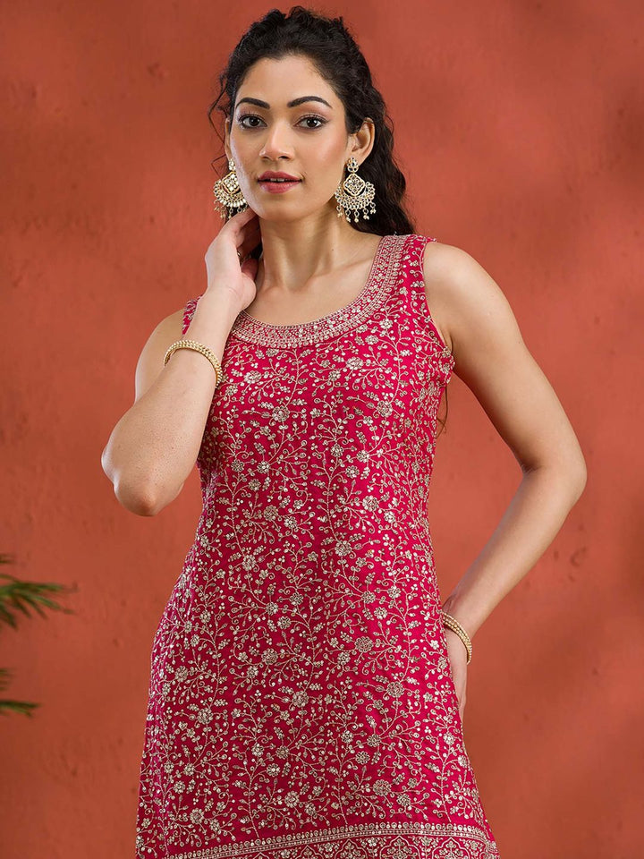 Rani Pink Silver Zari Work Georgette Readymade Kurta with Sharara & Dupatta (Set of 3)
