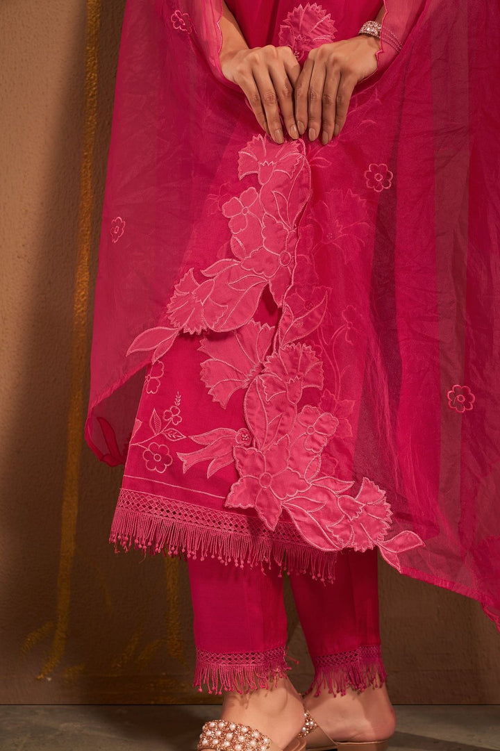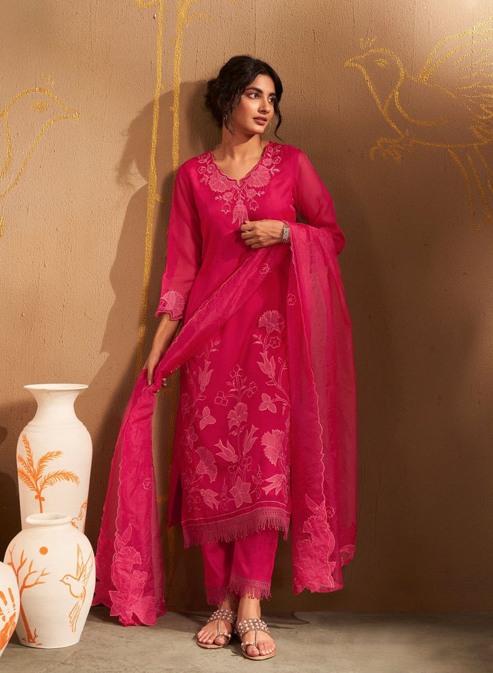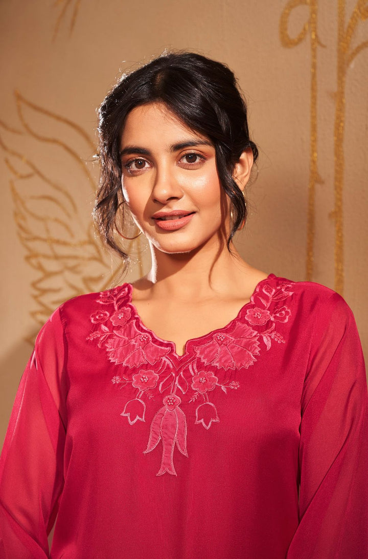 Red Floral Kurta with Pant and Dupatta (Set of 3)