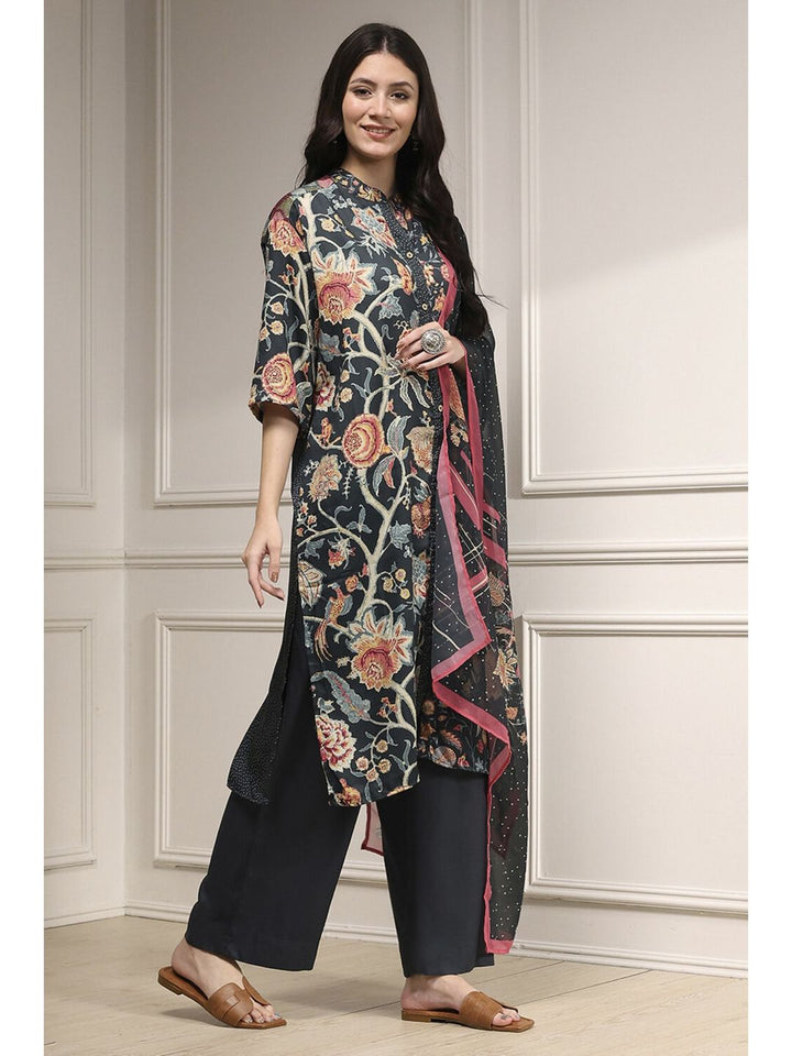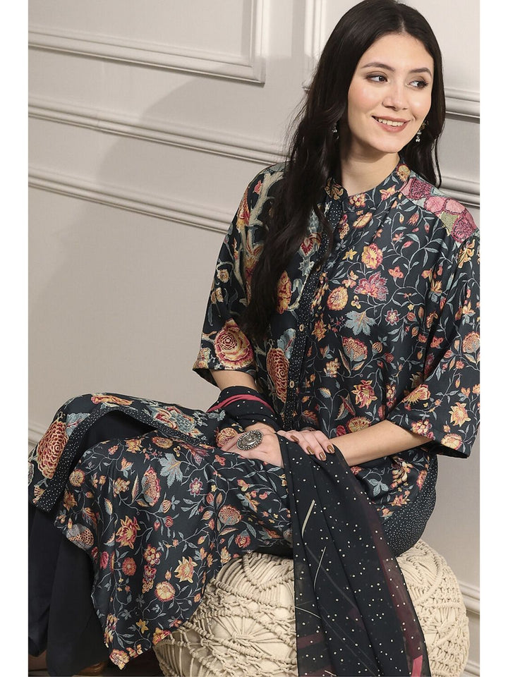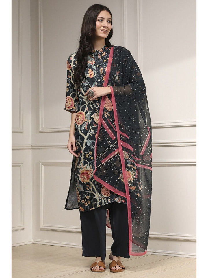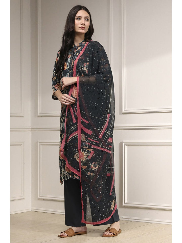 Women Black Printed Kurta and Pant with Dupatta
