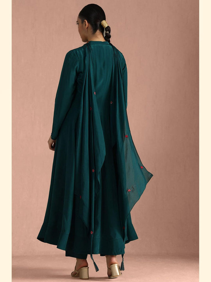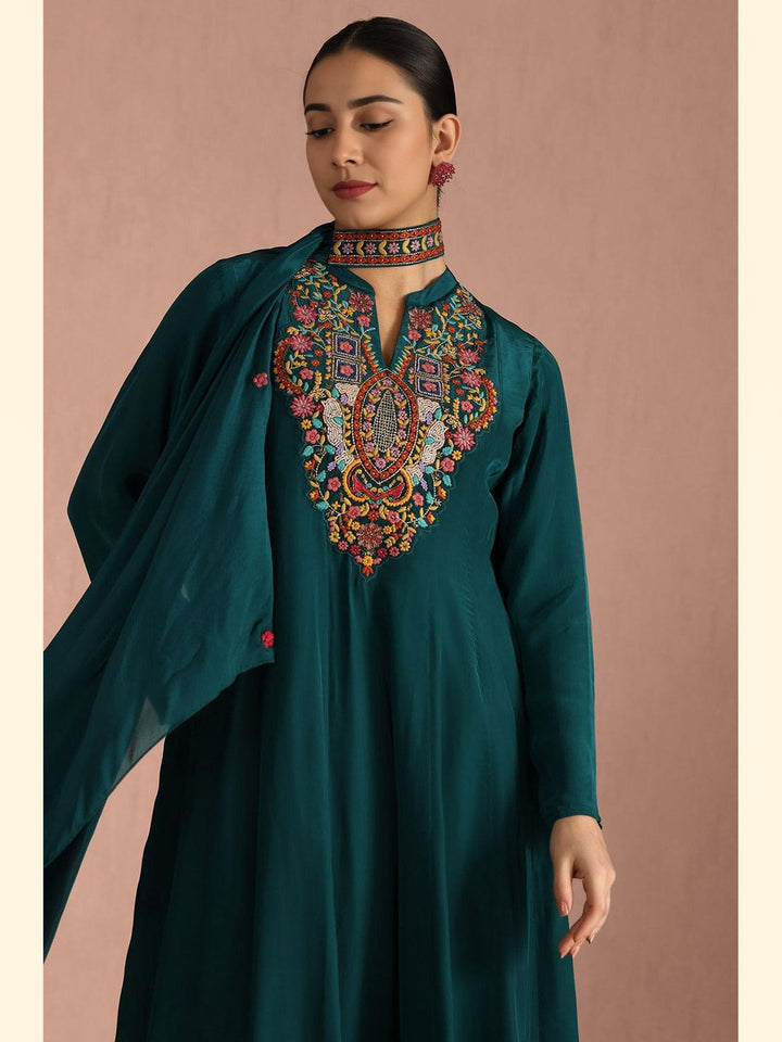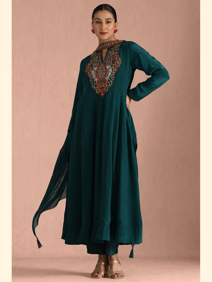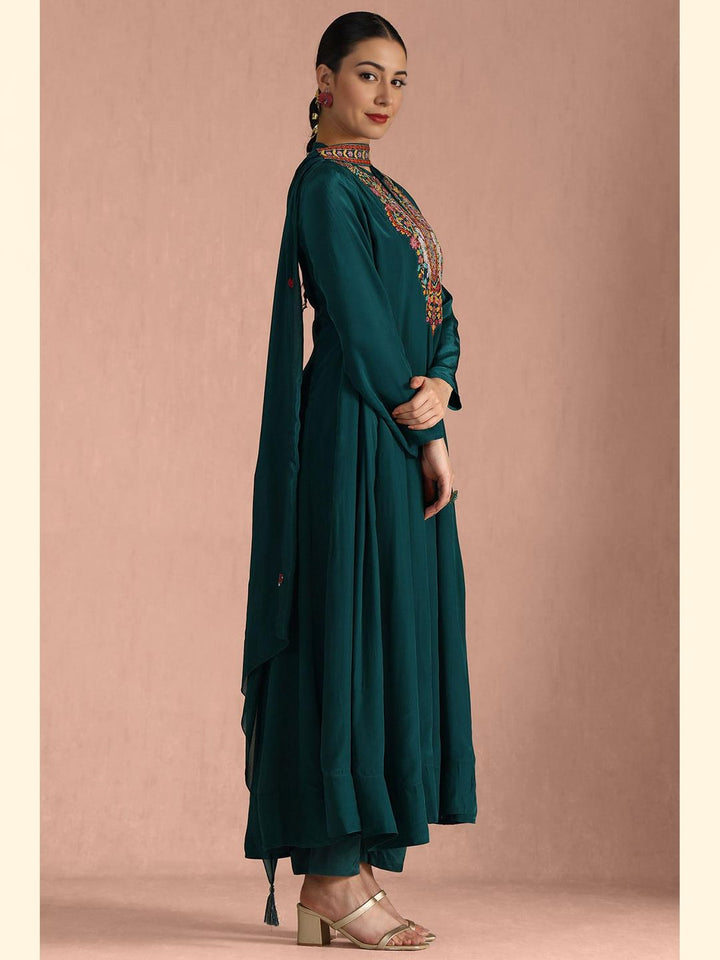 Women Teal Viscose Crepe Floral Print Kurta with Pant & Dupatta (Set of 3)