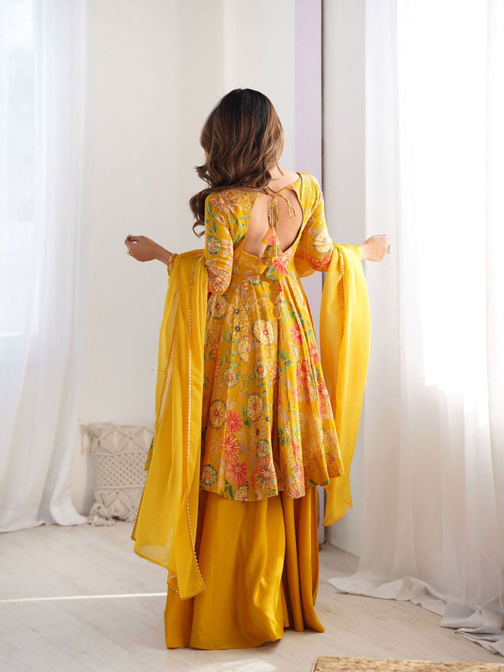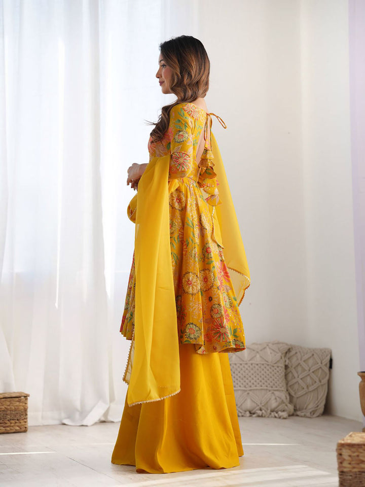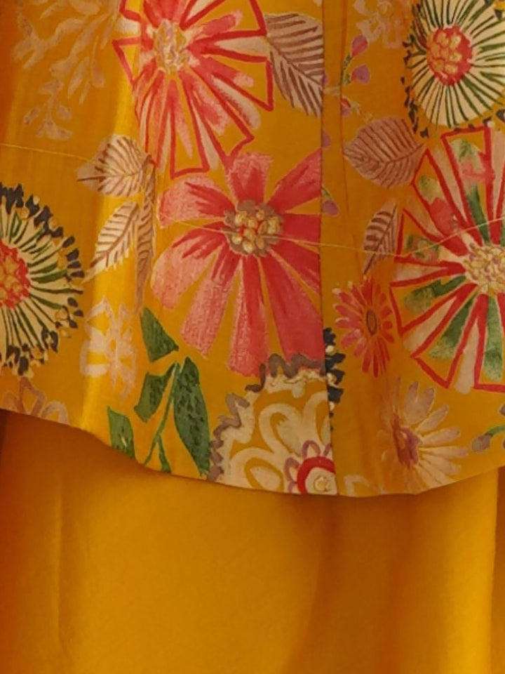 Yellow Silk Blend Printed Semi-Stitched Kurta and Palazzo with Dupatta (Set of 3)